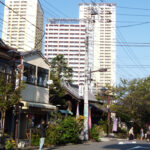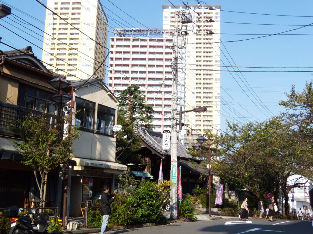 日暮里駅再開発の高層ビルと古い町並みのコントラストが興味深い